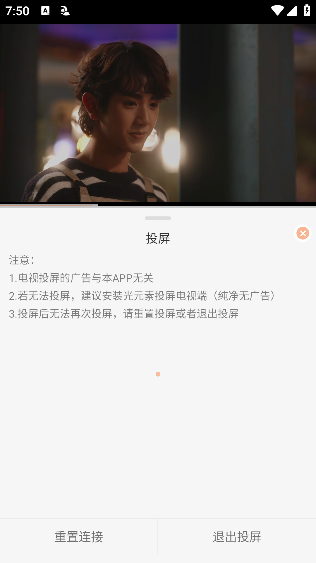 然后选择投屏设备即可,切记,手机和投屏的电视必须处于同一wifi状态下,否则会提示暂无设备。