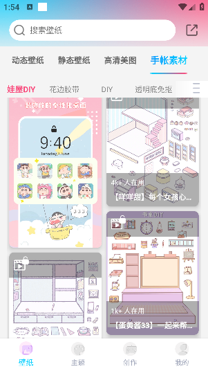 1、打开元壁纸app,点击上方搜索查找自己喜欢的壁纸;