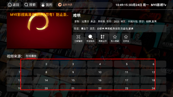MYE影视Tvapp官方最新版2025下载是一款十分好用的影视观看软件,里面的资源种类特别丰富,还能够支持不同画质选择,非常适合观影人士体验,还可以进行投屏等操作,全部都是免费提供。