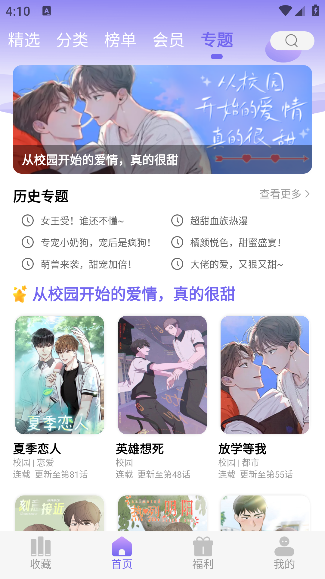 1、资源很全,想看的耽美漫画基本都能找到,更新速度也很快。