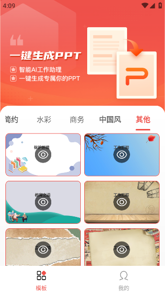 2、海量ppt模版:还提供了多种类型的ppt模板供你选择,包括商务、教育、科技、艺术、二次元,小清醒等各种主题。可以实时预览不同模板的效果,并一键应用到自己的ppt中。让你的ppt与众不同。