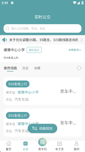 1、实时信息:查看最近公交车到站时间。