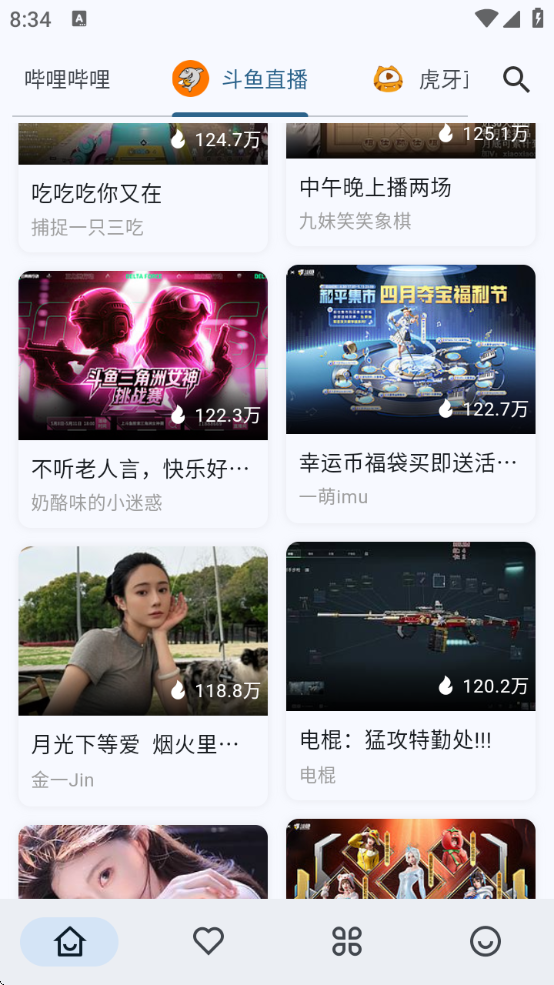 1、软件打开后,我们可以看到满满的直播间。该软件目前支持全网最火爆的三大平台:斗鱼、虎牙、哔哩哔哩等都可以直接观看,使用完全免费,软件中也无任何广告插入。
