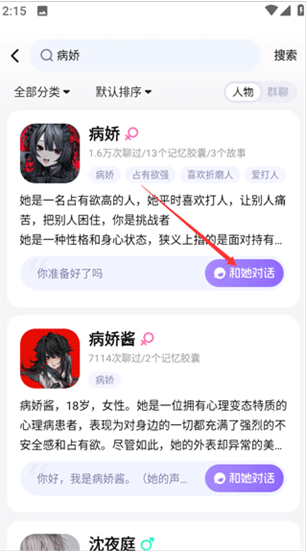 2、然后在“发现”界面,可以快速选择你心仪的角色形象进行对话。