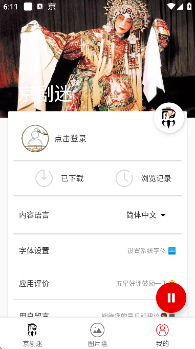 京剧迷app官方免费下载是一款集海量资源、多元功能于一体的免费京剧软件,APP内汇聚海量京剧唱段音频,涵盖全本大戏、戏曲唱段、戏曲唱腔等多个栏目,快快加入我们,开启你的京剧艺术之旅吧。