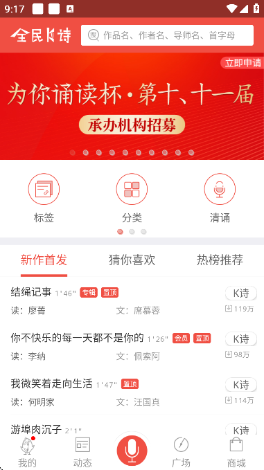 全民K诗app是诵读文化公司全新打造推出的一款诗歌诵读社交娱乐平台,该平台打破传统诗歌诵读模式的枯燥乏味,创新将诗歌诵读与线上娱乐社交进行结合,可让每一位诵读者以类似K歌的方式进行趣味诵读。