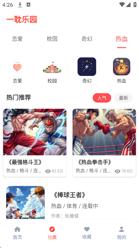 2、界面设计:界面简洁明了,分类清晰,用户可轻松找到感兴趣的漫画类型。