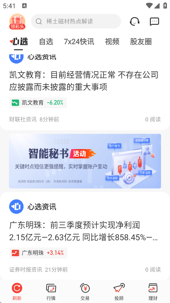 4、实时追踪自选股与持仓,支持涨跌预警、大事提醒等自动化盯盘功能,解放用户精力。