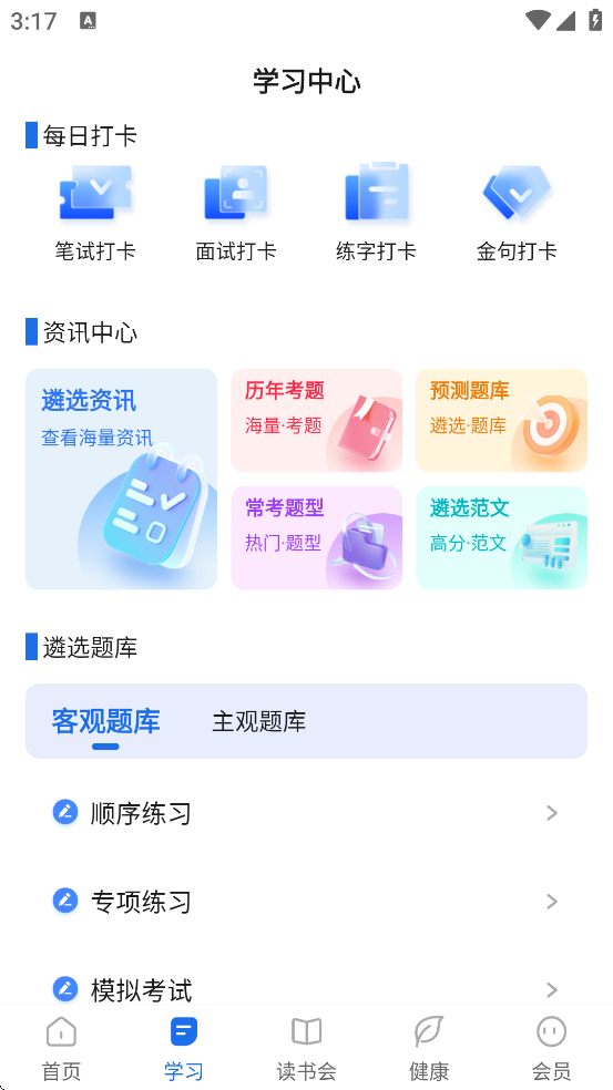 2、海量题库与智能练习:提供遴选考试真题库,支持章节练习、错题整理及模拟测试功能,配备AI智能分析错题原因。
