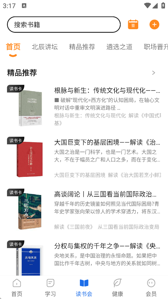 2、原创内容生态:包含大咖讲书、万本好书解读及遴选问答社区,提升综合素养。