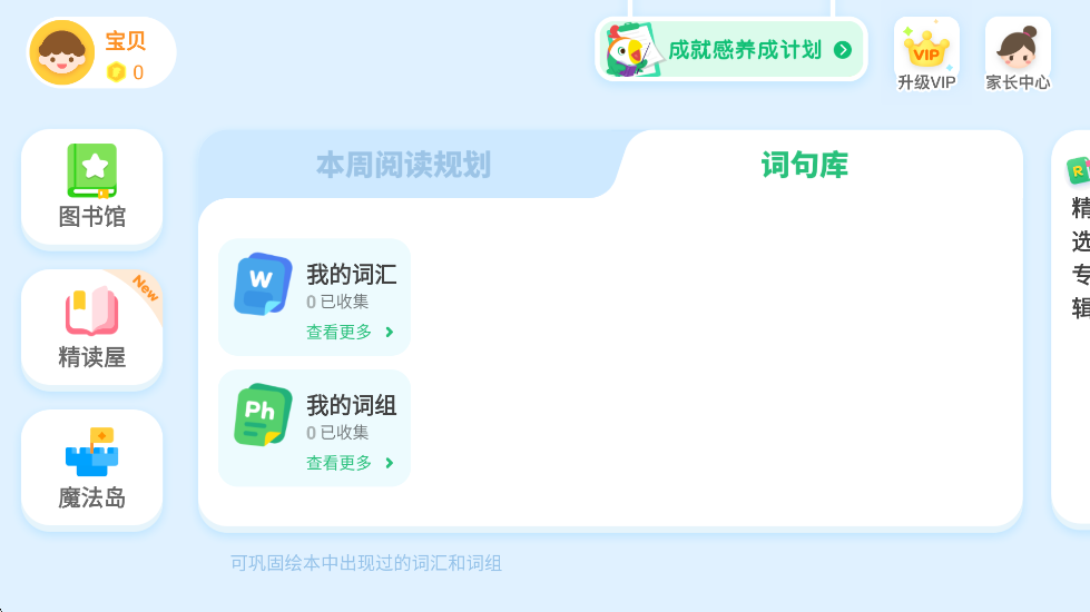 1、家长友好设计:支持自定义每周阅读量,数据与叽里呱啦体系课互通。