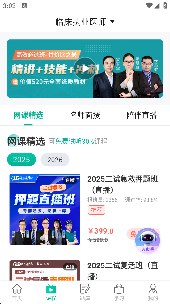 3、权威课程覆盖:包含执业医师、药师、护士资格等全医学领域课程,由知名专家录制并实时更新。