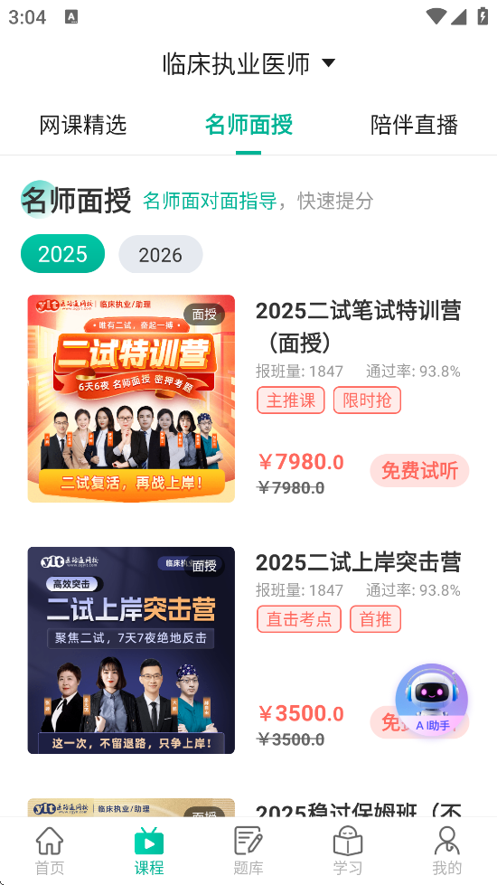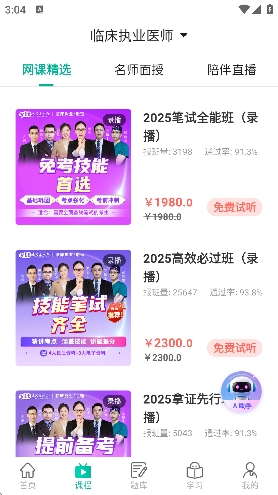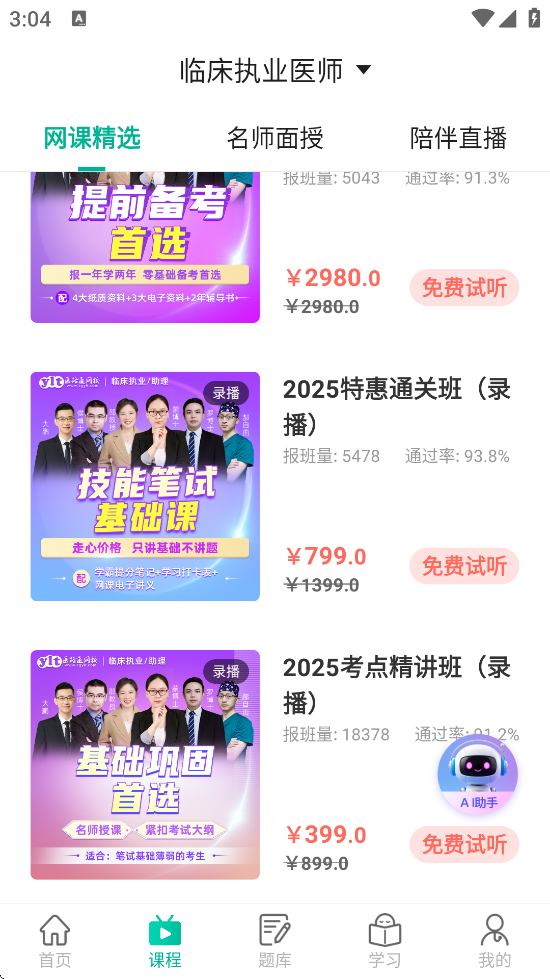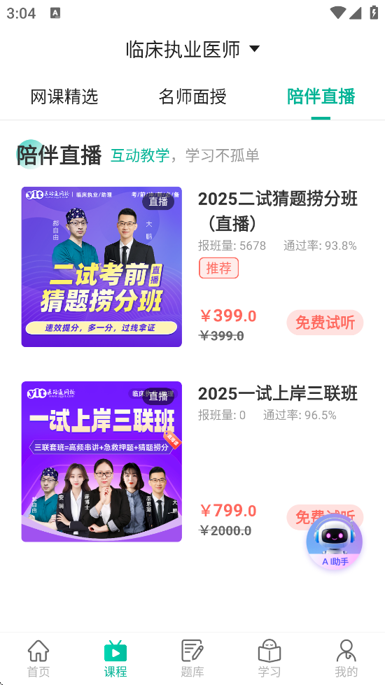 2、多课程自由切换:针对医疗从业者设计个性化界面,支持执业医师、药师、护士等课程快速切换,适配多考试需求。