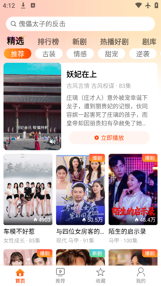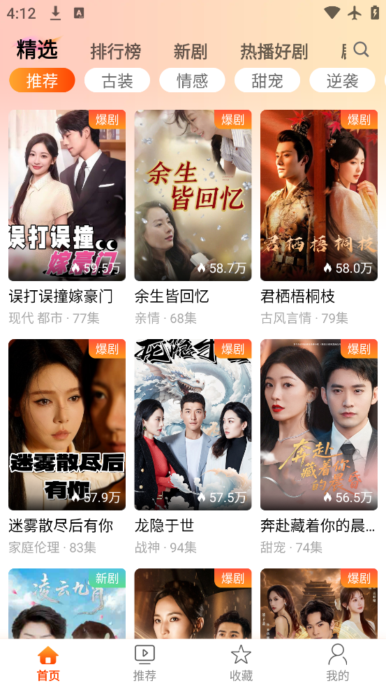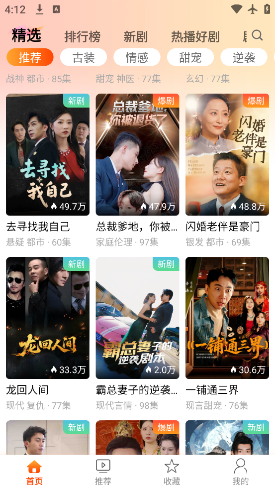 4、内容海量且题材突出: “汇聚都市言情、古装武侠等海量短剧”是其核心吸引力。这两大题材是短剧市场最受欢迎的类型,精准满足了主流用户的口味。