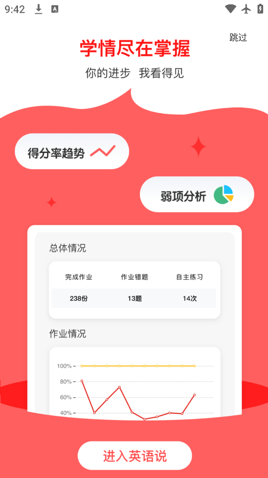 2、对用户的所有英语学习数据统计汇总,通过数据中心就可以了解学习的数据。
