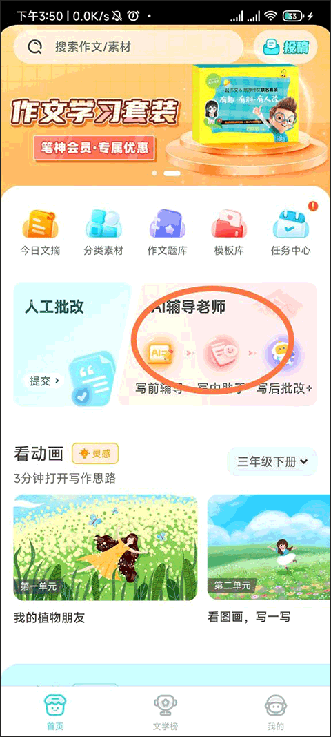 2、笔神作文app官方版摘取范文段落练习作文,专属智能辅导还能给你写作建议小纸条。
