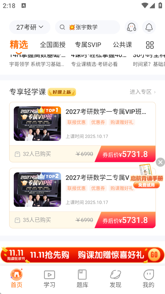 1、名师资源:汇聚考研数学张宇、英语刘晓艳、政治王吉等名师课程,提供高质量录播课与直播课。