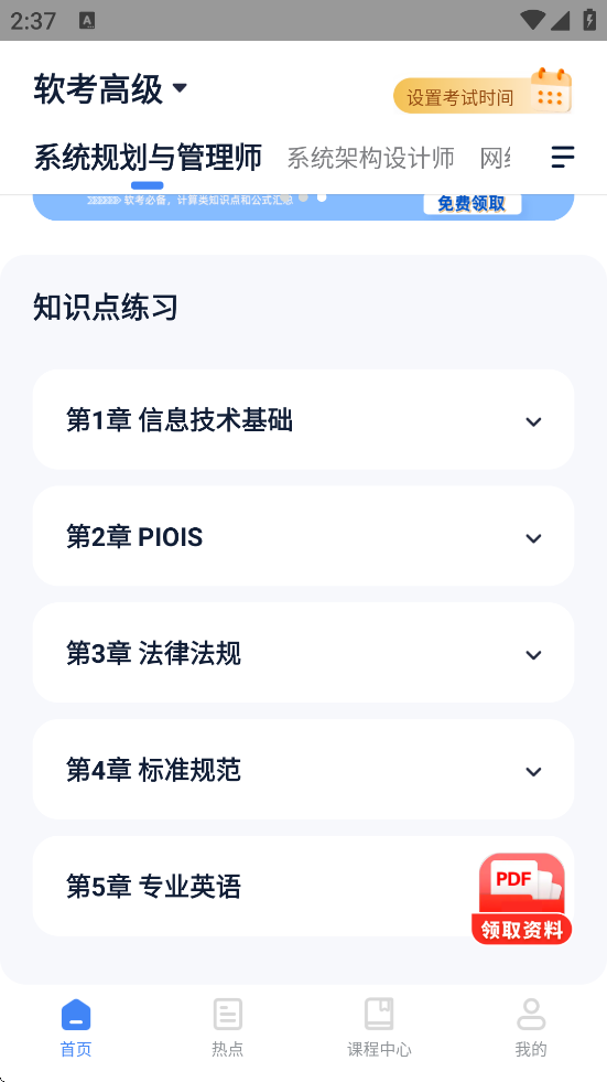 4、题库资源:覆盖软考初级、中级、高级3个级别19个科目的历年真题及专项考点,支持分章节练习和知识点定向突破。