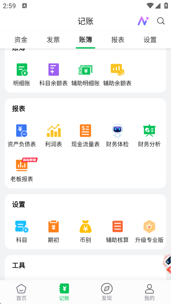 1、多账套管理:支持多公司、多部门账套独立管理,权限分配灵活,适合代账公司及集团企业。