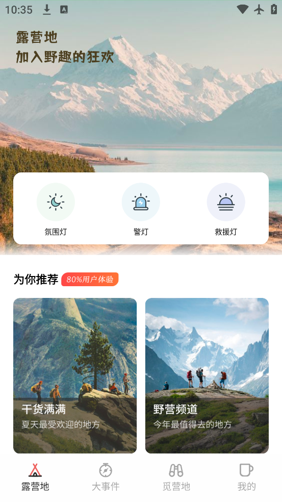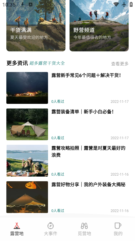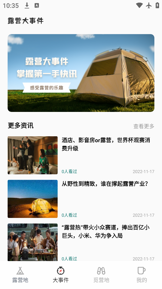 1、在露营地app了解更多露营资讯,感受露营的乐趣。