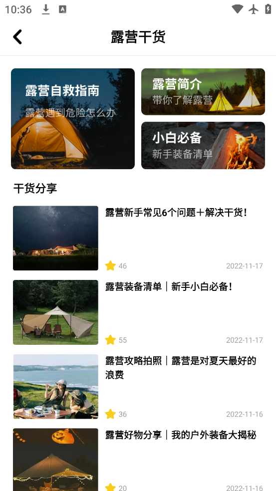 3、露营美食等丰富内容,让您从露营小白迅速成为专家,不容错过。