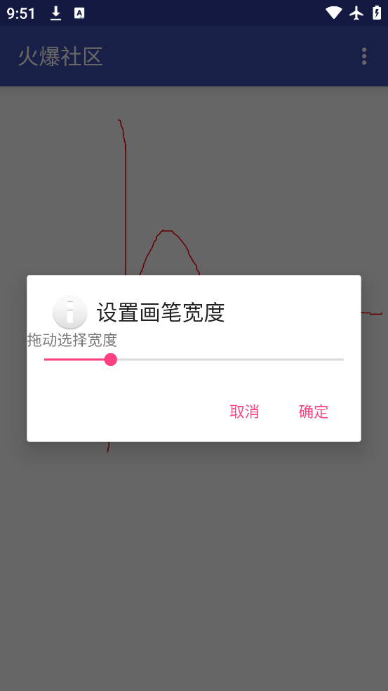 1、火爆社区app画笔大小的调节,可以根据需要放小缩小画笔,以及页面大小。