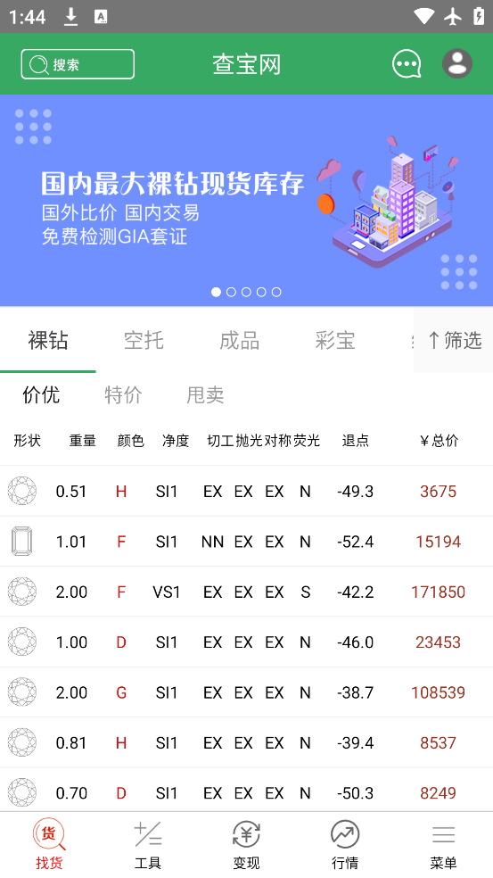 查宝网app下载手机版是一款专为珠宝行业打造的综合性信息查询与交易平台。它集成了珠宝鉴定、评估、交易及库存管理等多种功能于一体,为用户提供全方位的珠宝服务。无论是珠宝爱好者还是专业人士,都能在查宝网中找到自己需要的服务。软件界面简洁明了,操作便捷,是珠宝领域不可或缺的一款工具。