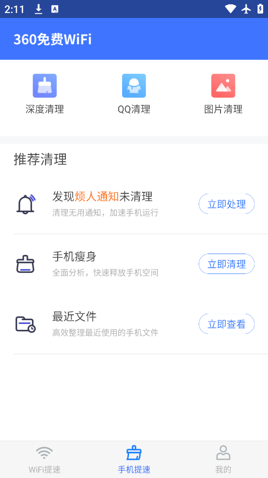 360免费wifi手机版官方下载是一款wifi管理工具,软件拥有wifi管理,手机提速等等功能服务,可以帮助用户更好的使用手机上网,觉得不错的朋友欢迎前来下载使用。