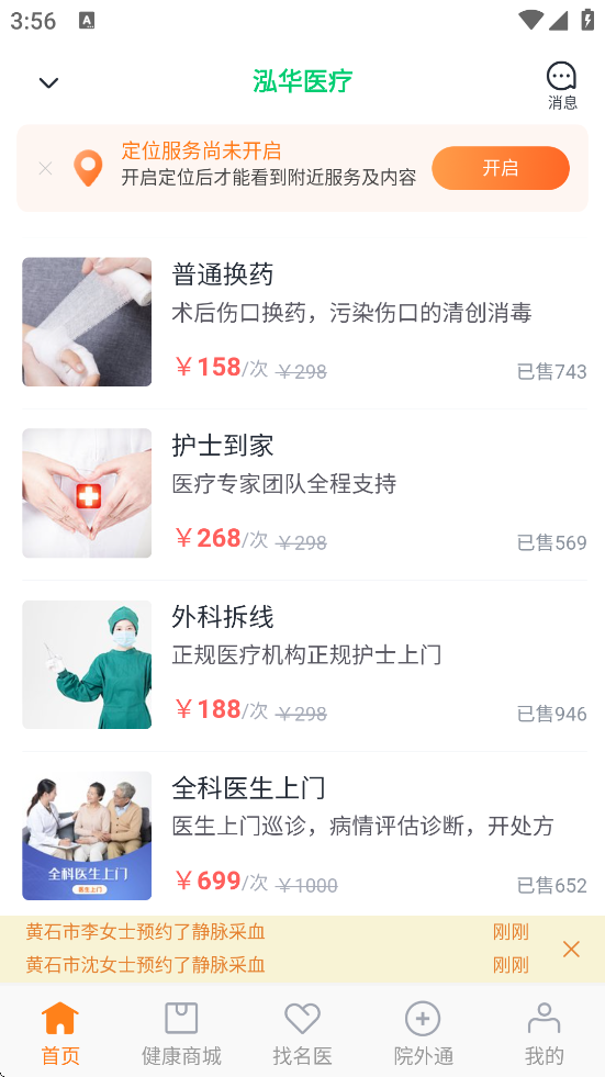 4、医护上门服务:覆盖56项专业护理(如全科医生上门、外科拆线、糖尿病护理等),5万名三甲医院认证医护团队支持,服务范围达全国330多个城市。