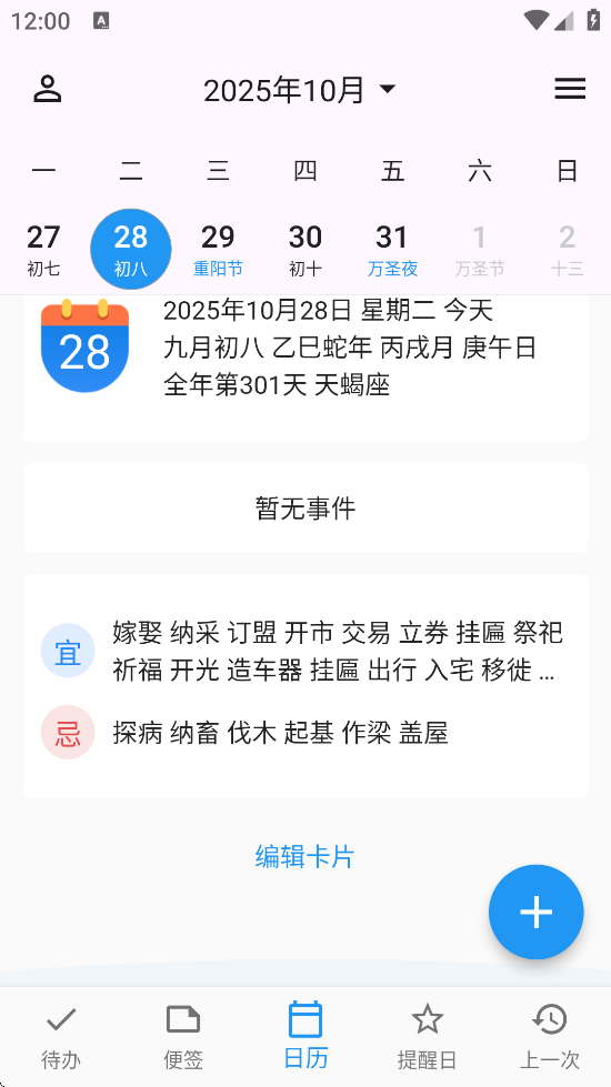 3、智能提醒:支持公历/农历日程提醒、纪念日(如生日、入职)及多重提醒设置,避免遗漏重要事项。