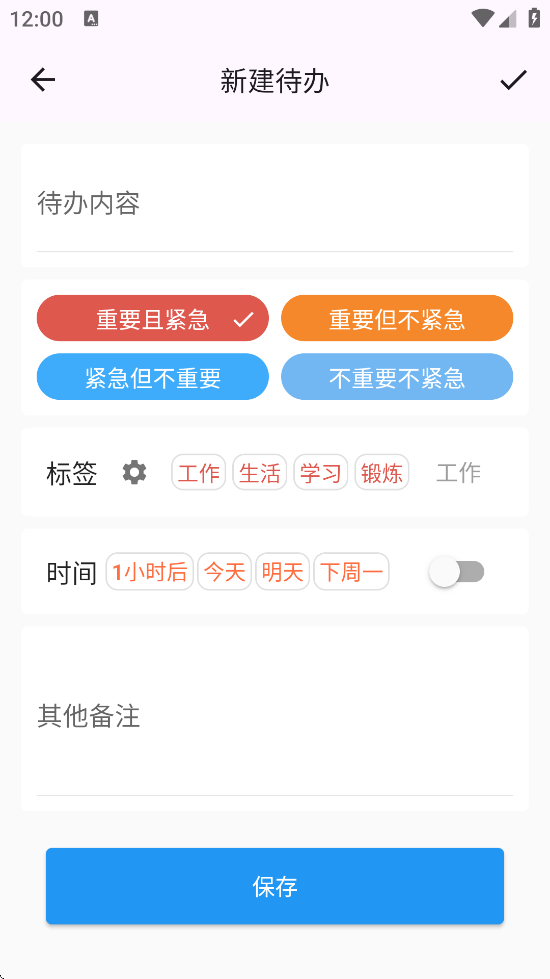 5、任务管理:提供四象限待办清单(基于紧急/重要分类)和番茄钟专注模式,支持任务分组与优先级排序。