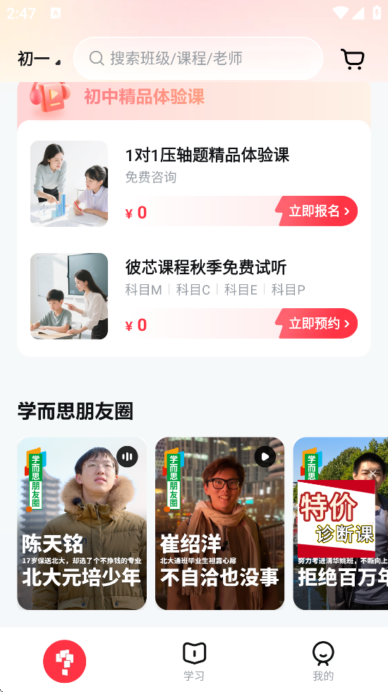 学而思培优软件下载安装最新版本是一款教育学习软件,软件内为用户提供丰富的学习资源,用户可以根据自己的需求进行报名,同时软件内为用户提供专属学习顾问,更多惊喜等你来发现,如此好用的软件,你还等什么?感兴趣的小伙伴快快下载前来体验吧!