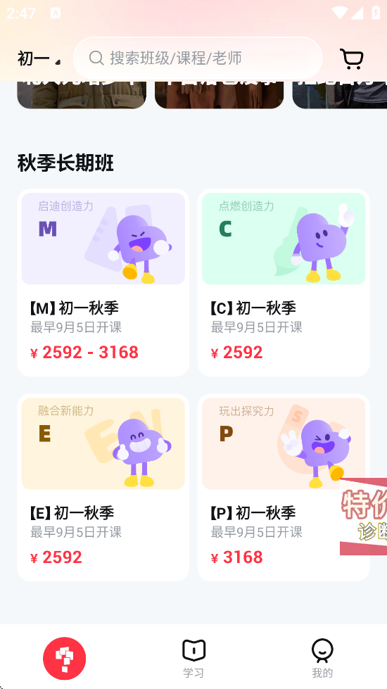 1、分层教学体系:分为基础/提高/培优三级,衔接学而思学习机S系列的培优课程。