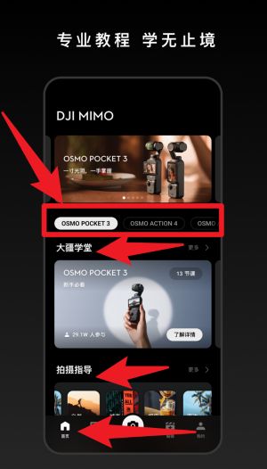 DJI Mimo 是大疆为手持稳定设备(如 Osmo Pocket、Osmo Action 等)打造的专属应用,支持精准控制云台相机、实时预览拍摄画面,并提供智能拍摄模式(如智能跟随、全景延时)和专业级编辑功能(如电影感调色、4K 素材快速导出)。其内置的 Story 模式 可一键生成运镜视频,而 D-log 模式 则保留更多动态范围,便于后期调色。此外,APP 还集成素材管理、语音字幕生成及大疆学堂教程,适合从新手到专业创作者的全场景需求。