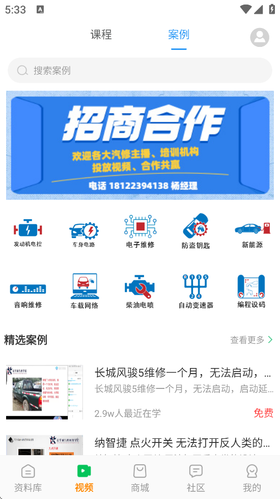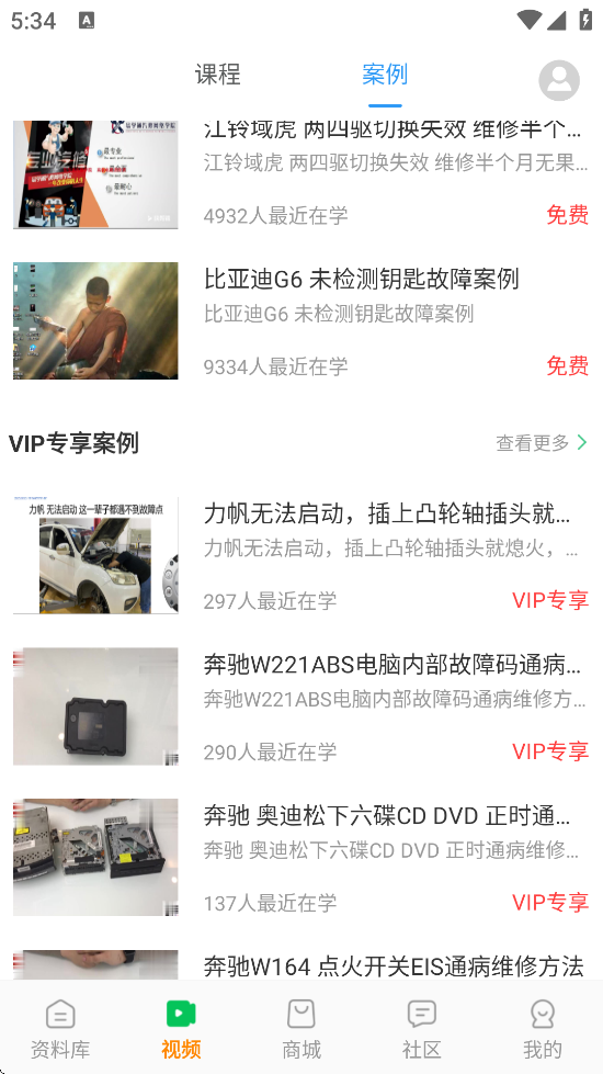 2、课程学习:免费与VIP课程涵盖电路基础、新能源维修等,部分课程学习人数超7.7万。