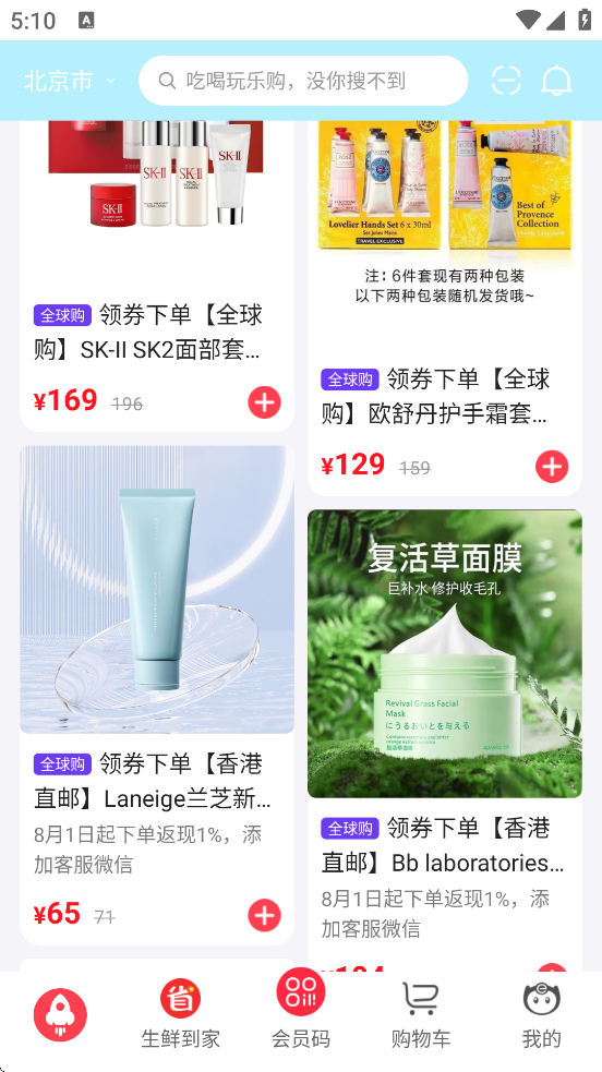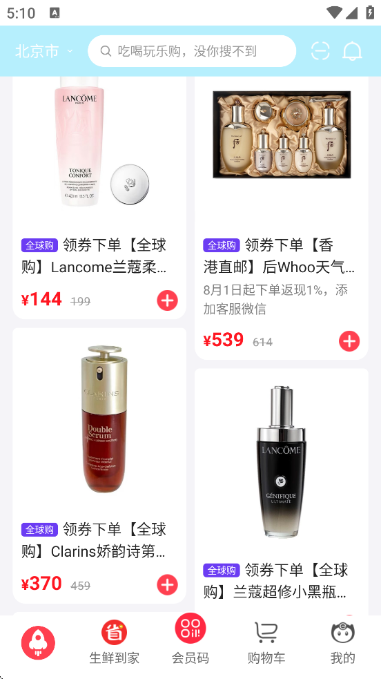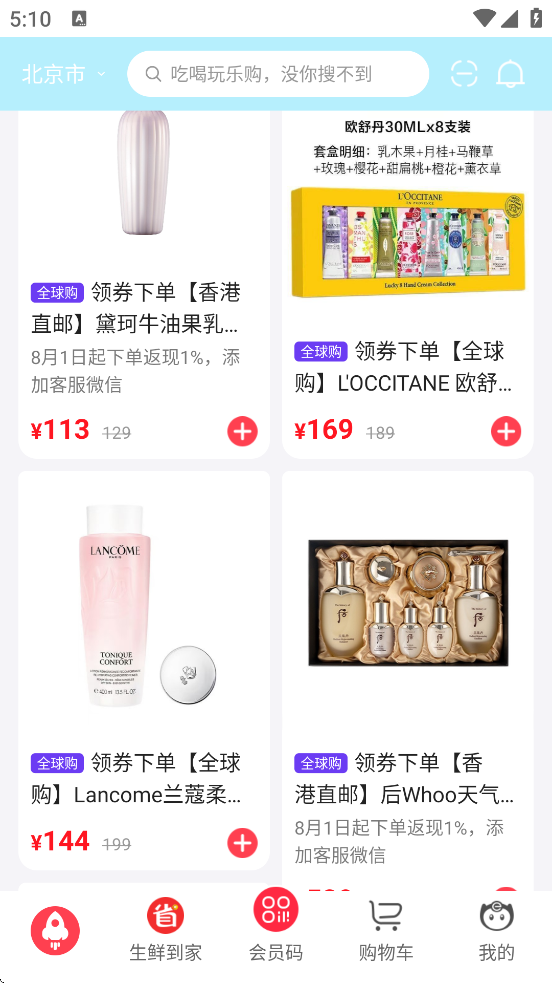 2、跨境直营:全球购板块提供美妆、奶粉等跨境正品,联盛直营保障品质。