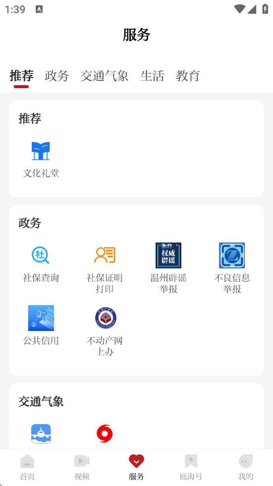 1、政务服务集成:提供政务服务功能,是瓯海区融媒体中心开发的手机端信息发布平台。