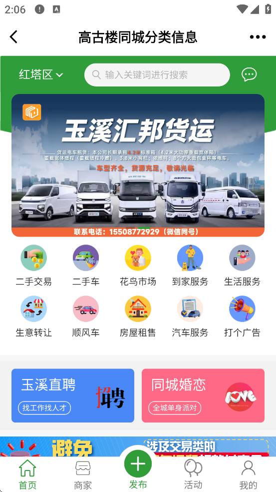 提供求职招聘、房屋租赁、二手交易等实用信息,用户可在对应板块浏览或发布需求。