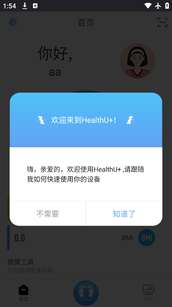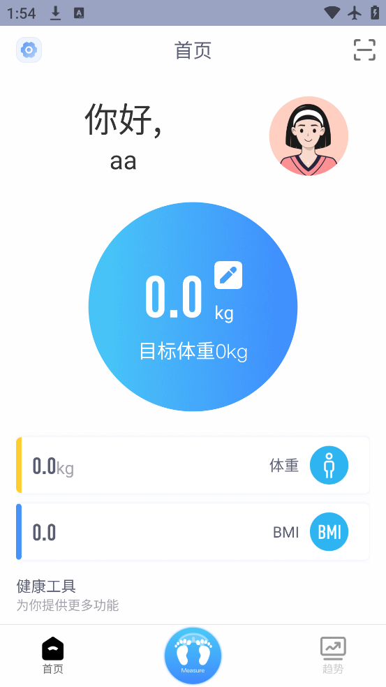 3、点击进入体重秤页面,快速链接绑定设备并称量体重后同步新数据。