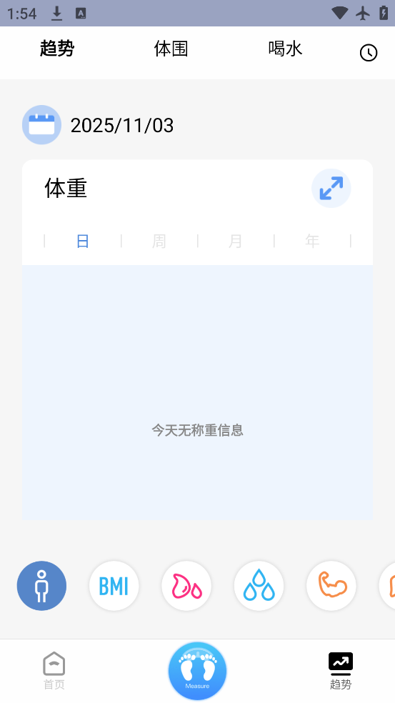 2、进入首页查看今日更新的体重数据,下拉页面查看更多参数。
