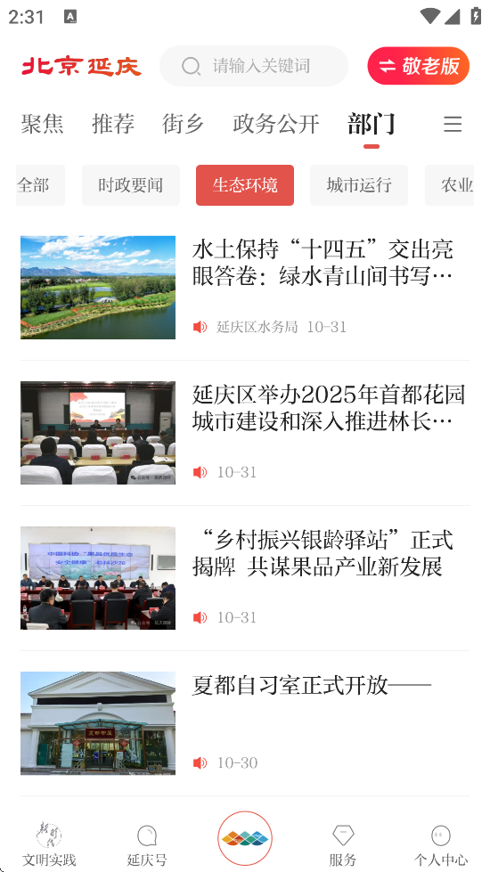 4、新闻阅读:提供延庆本地新闻、焦点要闻、街乡动态、部门机构、旅游文化等多版块内容,支持个性化推荐和语音自动读报。