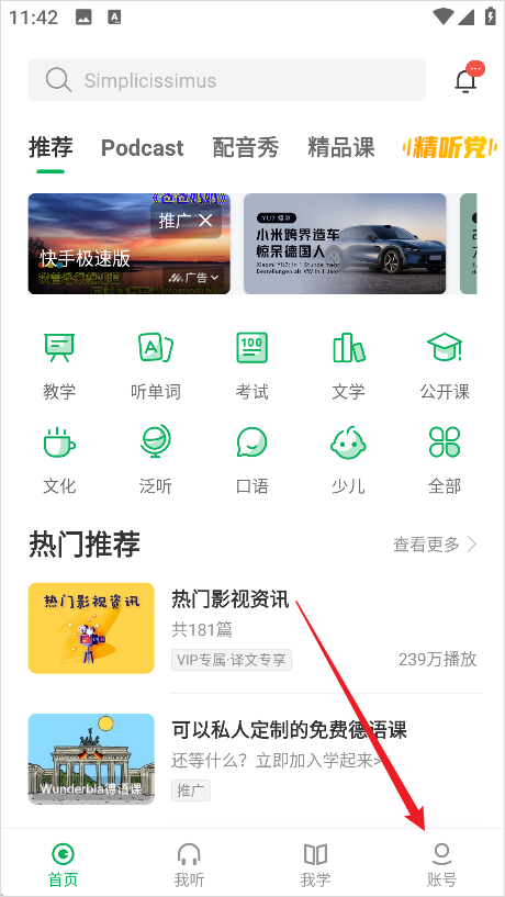 1、新闻资讯:每日德语听力app官方版下载实时为您推送德语媒体听力资源。