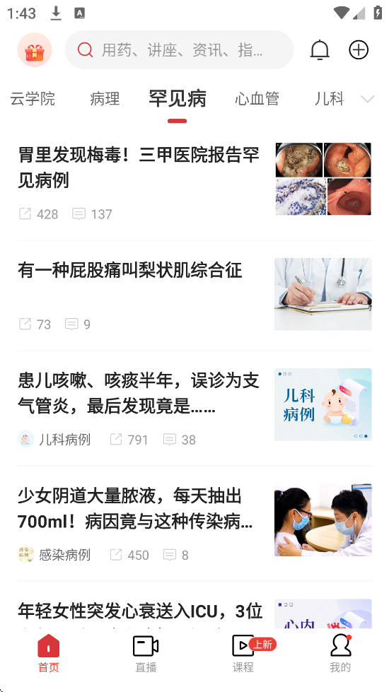4、医学资讯:每日更新200+篇涵盖30+个学科的前沿资讯,包括临床实操、医学前沿、行业会议等。