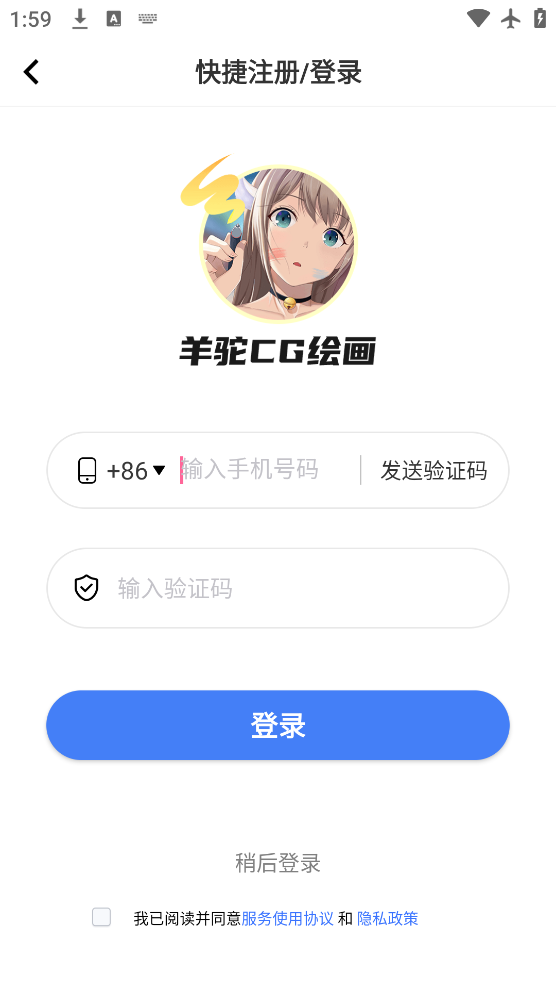 1、在本站下载安装羊驼CG绘画,打开后注册或登录账号。