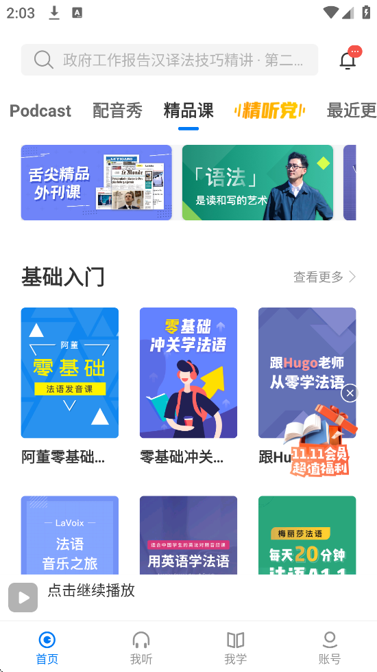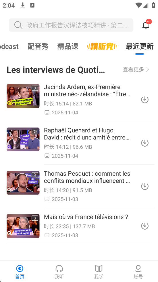 每日法语听力软件app下载安装安卓版是一款教育学习软件,软件内为用户提供最新法语媒体听力资源,用户可以在线进行学习和听力练习,更多惊喜等你来发现,如此好用的软件,你还等什么?感兴趣的小伙伴快快下载前来体验吧!