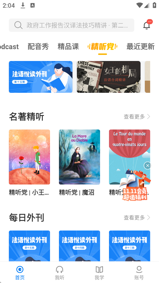 每日法语听力是由上海倩言网络科技有限公司开发的一款专注于法语听力学习的教育类APP,提供海量听力资源,包括新闻资讯、经典教材、听力集锦、FM电台等,每日更新。其核心功能涵盖划词搜索、语速调节、收藏下载、跟读打分等多维度学习工具,特色模块如精听党、配音秀、学习计划及听力挑战,旨在帮助用户系统提升法语能力。该软件与《法语助手》无缝集成,共享生词本、词典及发音库,学习记录自动同步。截至2025年5月,软件最新版本为11.5.4,持续优化用户体验。
