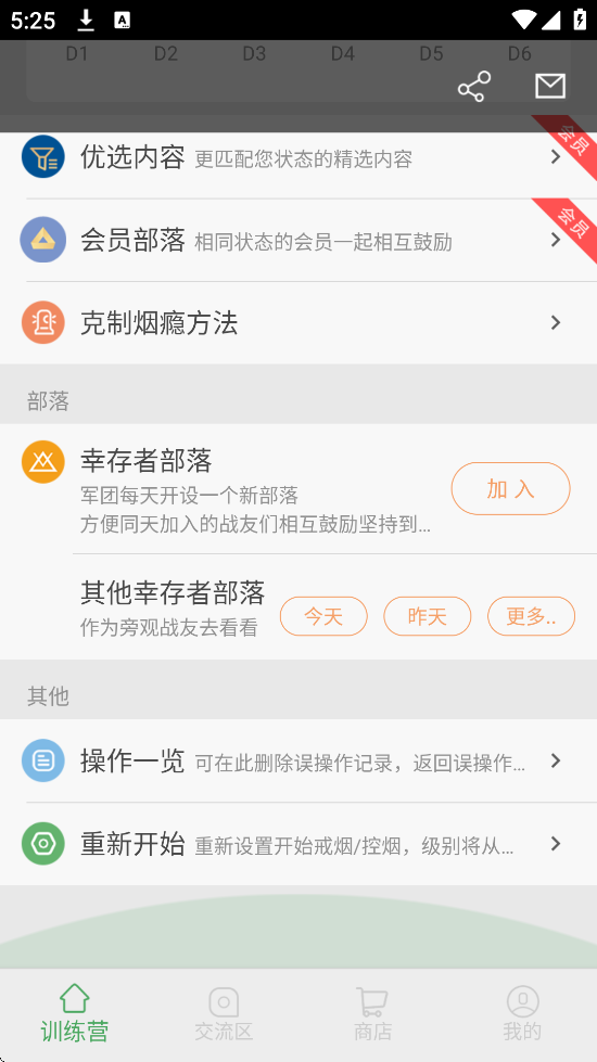 4、部落系统:用户可加入同期戒烟部落,共同打卡、分享心得。