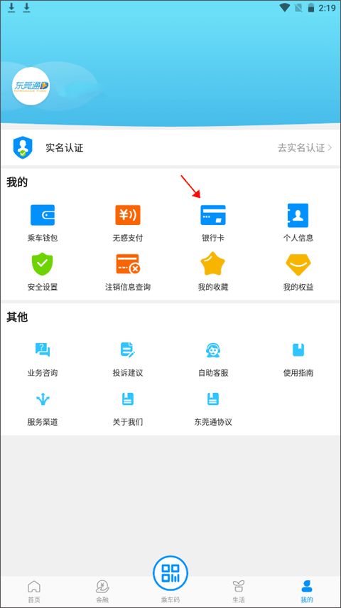 2、东莞通卡服务:包括余额查询、在线充值、圈存(线上金额同步至实体卡)及网点查询。