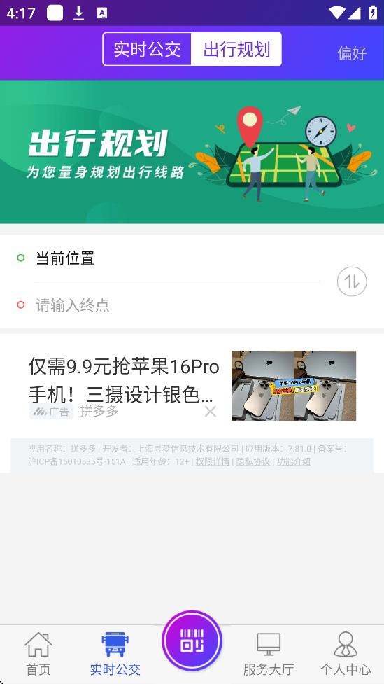 1、出行规划:输入起点和终点后,智能推荐多种换乘方案(含公交、地铁、打车等),并提供详细线路和站牌信息。