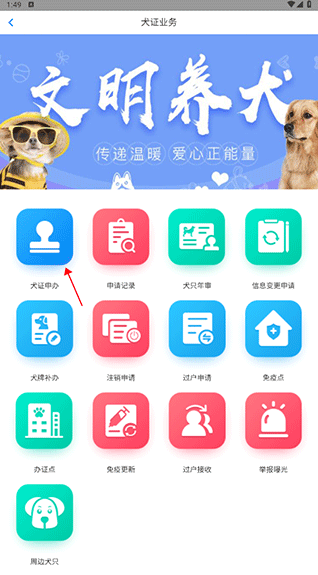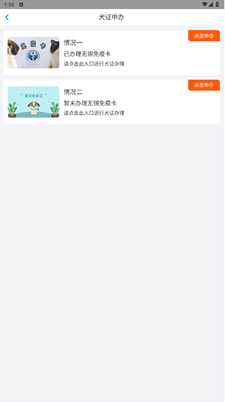 4、更文明的一种养宠物方式,不仅能够为你的狗狗在线申请办理犬证,还能随时查看附近的免疫点!